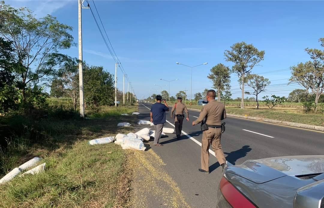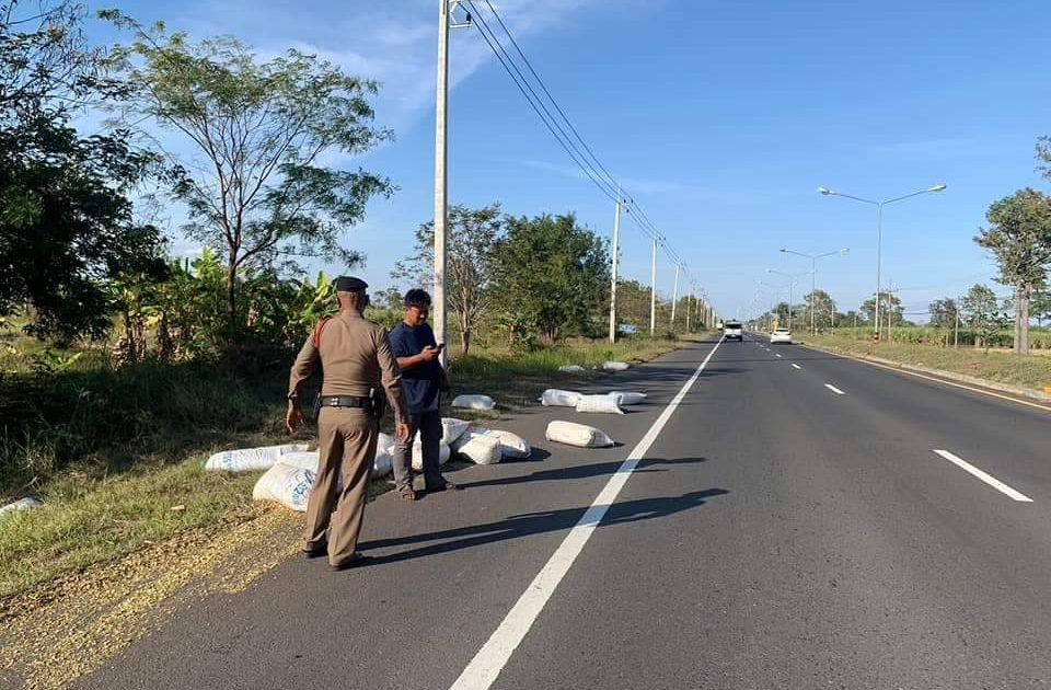 ของหล่นเราช่วยเก็บ!! 7 กุมภาพันธ์ 2566 โดย admin / ข่าวประชาสัมพันธ์,ข่าวกิจกรรม,ข่าวประชาสัมพันธ์,ข่าวภารกิจผู้บังคับบัญชา เจ้าหน้าที่ตำรวจสายตรวจ !!ช่วยเหลือ!! ประชาชนเก็บถุงอาหารสัตว์ที่ตกหล่น เพื่อป้องกันการเกิดอุบัติเหตุซ้ำซ้อน บริเวณจุดกลับรถ บ้านหนองปรือ-โคกเพชร ถนน 218 บุรีรัมย์-นางรอง# สภ.หนองสองห้อง ภ.จว.บุรีรัมย์
