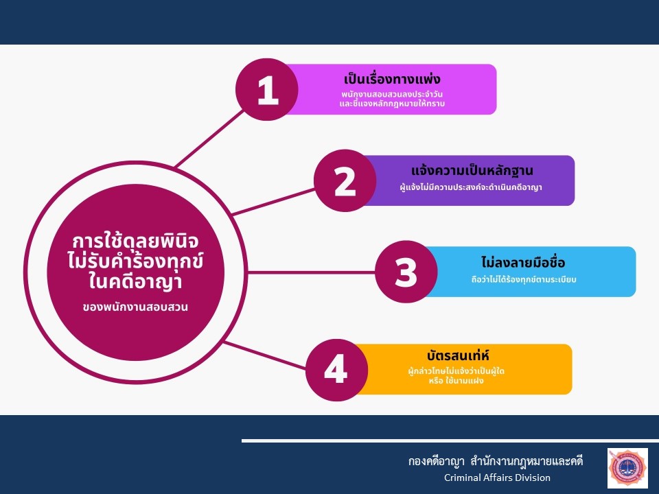 แนวปฏิบัติในการใช้ดุลยพินิจไม่รับคำร้องทุกข์ ในคดีอาญา