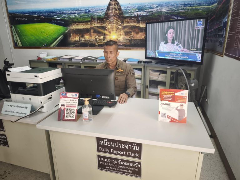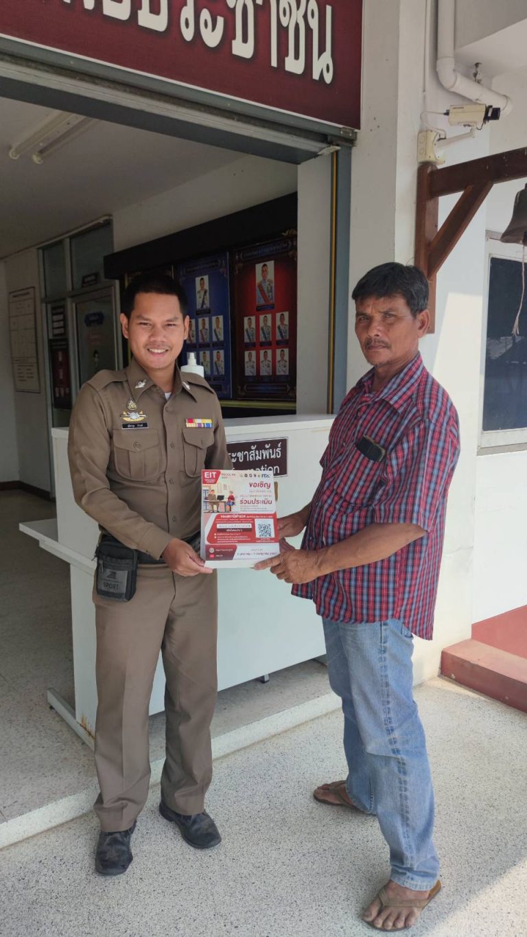 เจ้าหน้าที่ตำรวจสภ.หนองสองห้อง ประชาสัมพันธ์ ทำการประชาสัมพันธ์ การตอบวัดการรับรู้ของผู้มีส่วนได้เสียภายนอก EIT ณ จุดบริการประชาชน One Stop Service